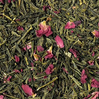 Green flavored tea with a wonderful taste of cherry and decorated with rose petals, based on China Sencha.