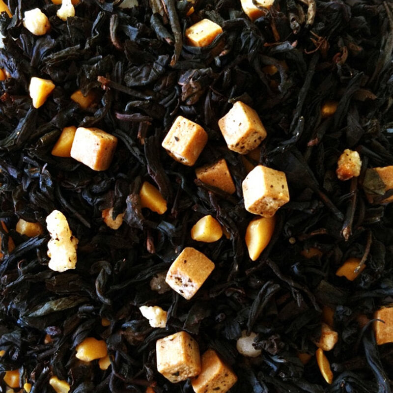 Black tea with salted caramel and almond crunch.