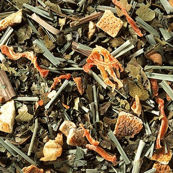 Herbal tea with lemon balm, lemongrass, apple, orange peel, carrot flakes, lemon mint and sweet blackberry leaves.