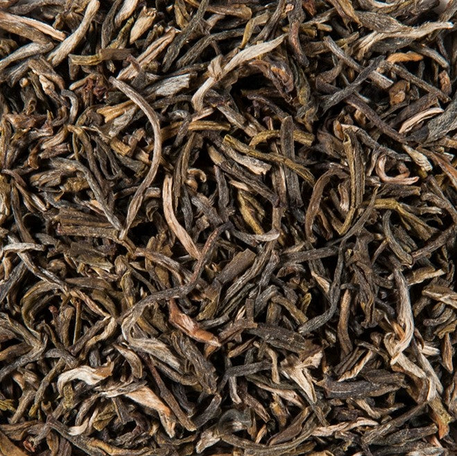 Grøn kinesisk the af høj kvalitet med smukke, sølvfarvede spidser. Theen håndplukkes i Yunnan-provinsen /sydlige Kina.