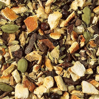 Urteblend med orangeskal, enebær, kanel, fennikel, lakridsrod, kardemomme, ingefær, angelika rod, kvan, mælkebøtterod, nellike og peberkorn.