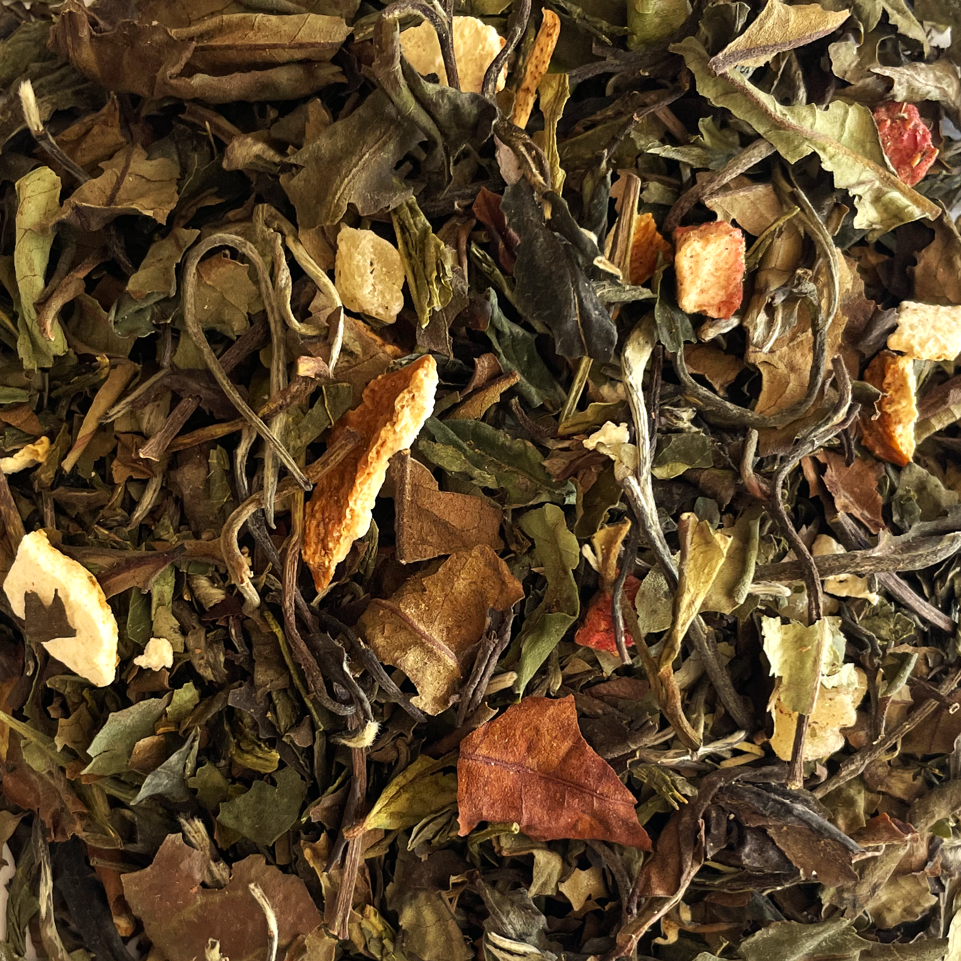 Hvid kinesisk the med grøn the, ananas, orangeskal, jordbær og jasmin.