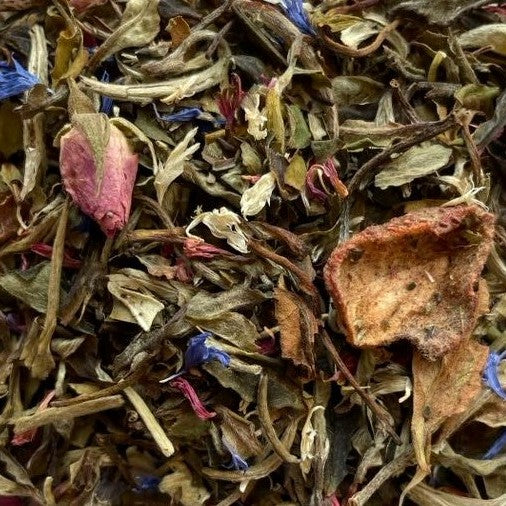 Eksklusiv, hvid kinesisk the med ananas, jordbær og vanille. Egen blanding.