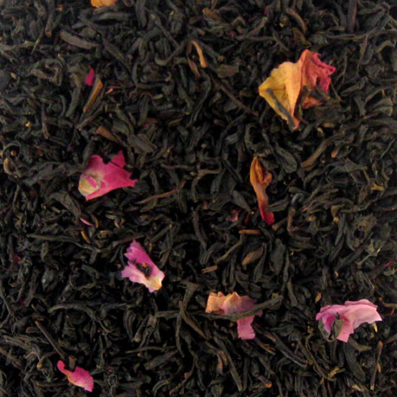 Sort Keemun ”Congou” med ægte rosensmag og hele rosenblade.