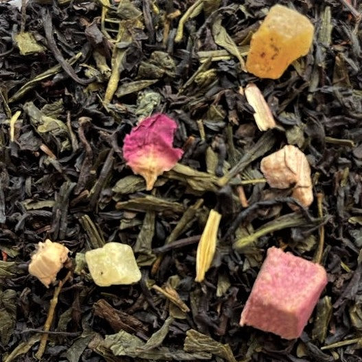Sort og grøn kinesisk the med bergamot, rabarber, ananas, vanille og rosenblade.
