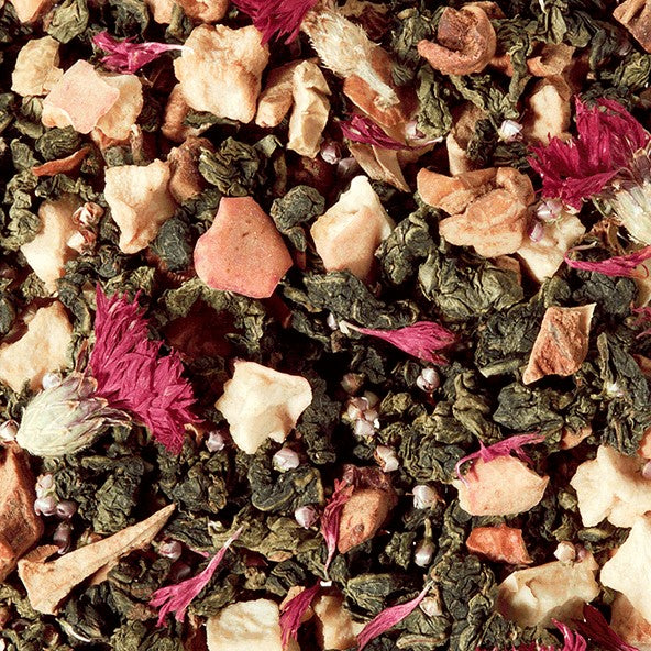 Kinesisk grøn Oolong med æble, hedelyng, rød kornblomst og hyldeblomst.