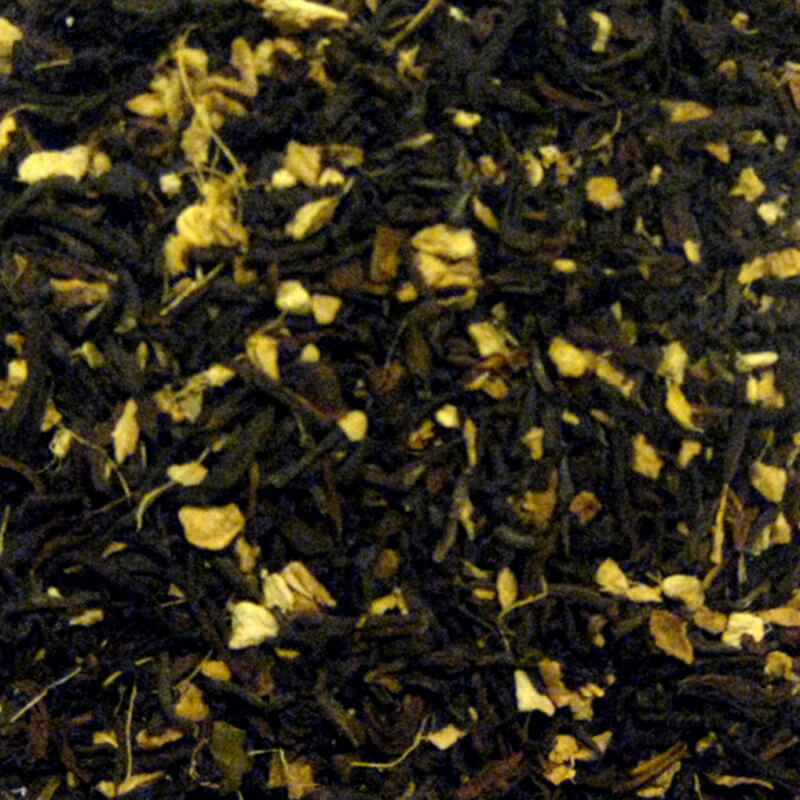 Sort kinesisk the med ingefærstykker. Meget populær ingefærthe, Ingefær anvendes bl.a. som naturmedicin mod infektioner og anses desuden for at være kvalmestillende. Theen har en udpræget og skøn smag af ingefær.